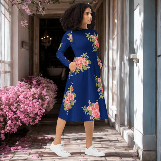 Royal Blue Floral midi dress