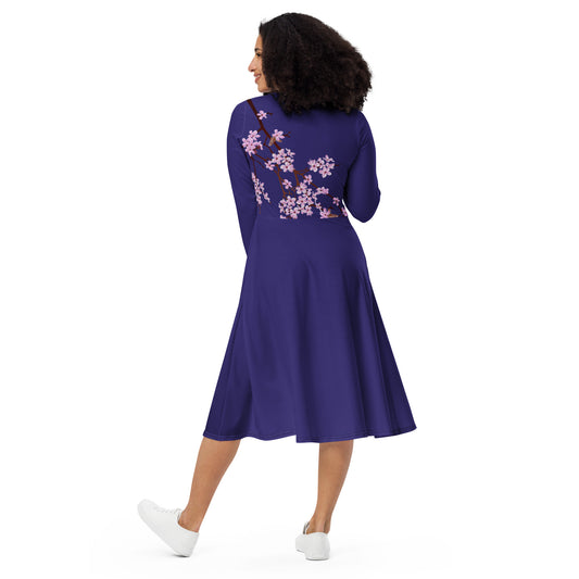Purple Cherry Blossom long sleeve midi dress