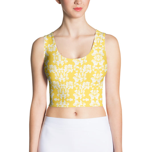 Yellow Lace Pattern Crop Top Sports Bra