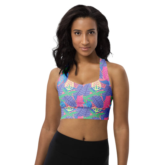 Pink Simple Floral Recycled Longline Sports Bra