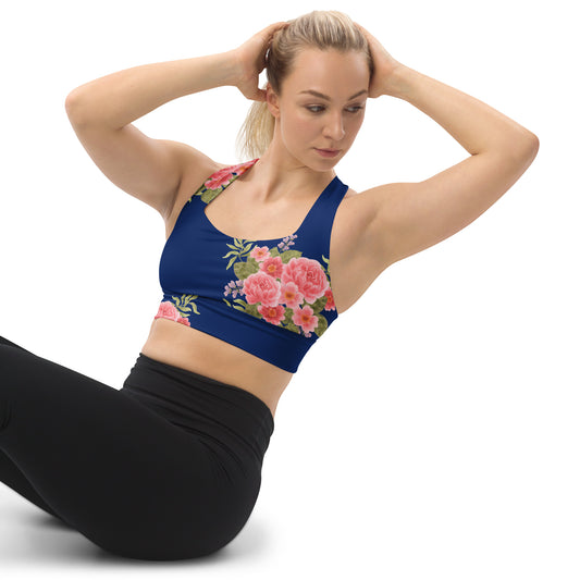 Royal Blue Floral Pattern Recycled Longline Sports Bra