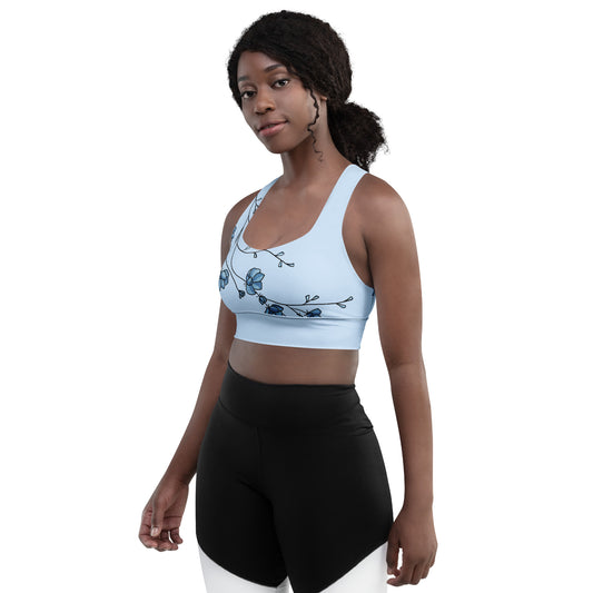 Blue Flower Twig Recycled Longline Sports Bra